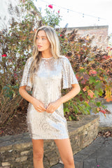 Stand out in style with our Berkeley Sequin V-Back Dress. The shimmering sequins and open V-back add a touch of glamour, while the round neck and short sleeves keep it classic. Perfect for a night out, this mini length dress features a back zipper closure for easy wear. A must-have for any fashion-forward wardrobe!