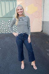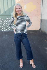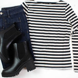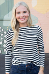 The Bethel Boatneck Tee in Light Oat/Black Stripe brings a playful twist to classic style. Featuring a flattering boat neck and cozy long sleeves, this striped tee is perfect for adding a dash of fun to your everyday look. Whether layered or worn solo, it’s a cheerful choice for any casual adventure!
