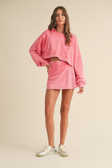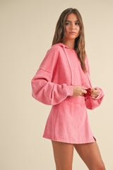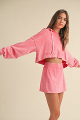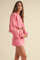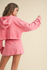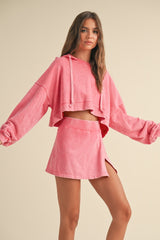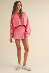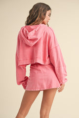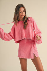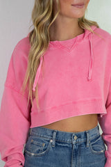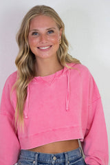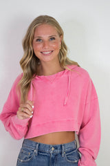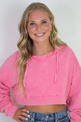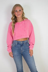 Stay cozy and cute in the Blaire Mineral Wash Pullover Hoodie! This pink, cropped hoodie features a soft mineral wash for a vintage vibe, a drawstring hood for adjustable comfort, and long sleeves to keep you warm. Perfect for layering or lounging, it adds a playful pop of color to any outfit!