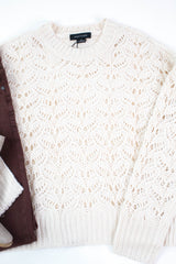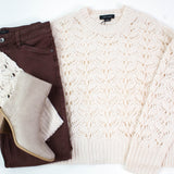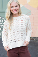Cozy meets cool in the Boheme Popover Sweater! This light oat beauty features an open knit design with long sleeves and a classic crew neckline, perfect for layering or wearing solo. Side slits add a playful twist, giving you freedom to move and style it your way. Embrace effortless comfort with a touch of charm!