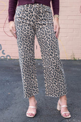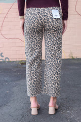 Step out in style with the Brielle High Rise Crop Jeans featuring a bold animal print that adds a wild twist to your wardrobe. These jeans offer a comfy high-rise fit, playful cropped length with wide legs, and edgy frayed hems for a carefree vibe. Plus, handy side pockets keep essentials close while you strut your stuff with confidence and flair!