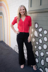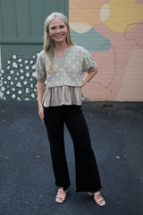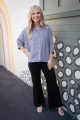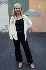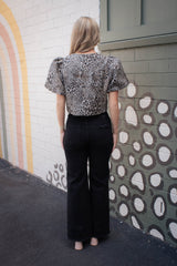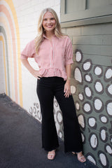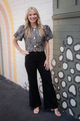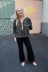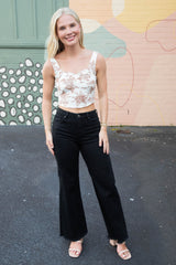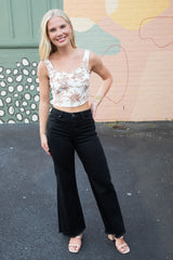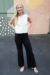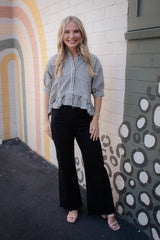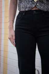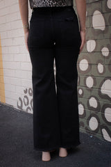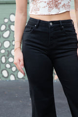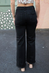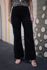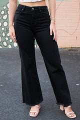Step out in style with the Brielle High Rise Wide Leg Jeans in sleek black. Designed with a flattering high rise and tummy control, these jeans hug your waist while offering a comfortable, wide-leg fit. The playful frayed hem adds a touch of edge, making them perfect for both casual days and nights out. Embrace effortless cool with every step!