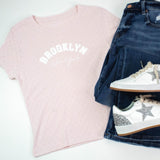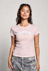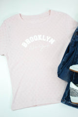 Brooklyn NY Heart Pointelle Baby Tee, Peach Blush