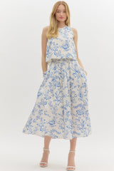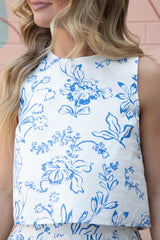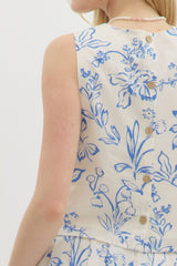 Add a pop of personality to your wardrobe with our Brynn Floral Sleeveless Top! This cream blue top features a charming floral print and a back wooden button closure for a touch of rustic charm. With a round neck and sleeveless design, it's perfect for staying cool and stylish all day long!