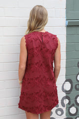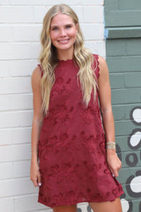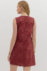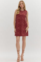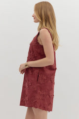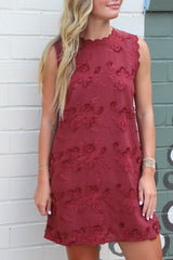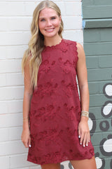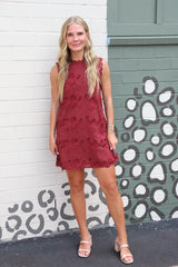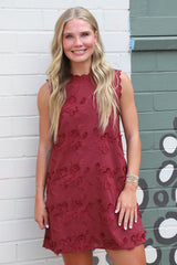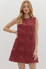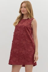 Cali 3D Floral Applique Mini Dress, Burgundy