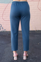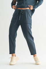 Slip into ultimate comfort with the Callie Tapered Lounge Pants in Midnight Navy. Featuring a playful tapered hem and raw edges for a relaxed vibe, these pants boast an elastic drawstring waist for the perfect fit every time. With handy side pockets, they're ready for all your lounging and lounging-imaginative missions. Cozy never looked so cool!
