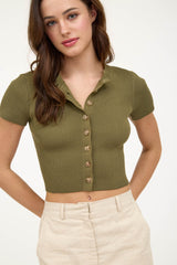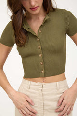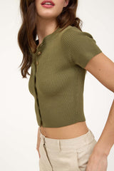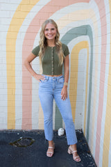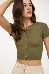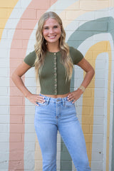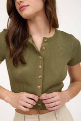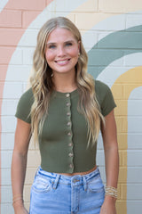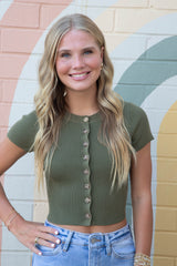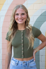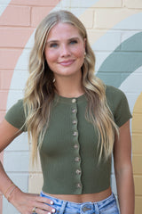 This Cambria Cropped Cardigan in dark olive is your new go-to for playful layering. Featuring a cozy ribbed knit and cute button-down front, it’s perfect for adding a pop of style without the bulk. The cropped cut and short sleeves keep things light and breezy, while the round neck adds a sweet, simple touch. Pair it with high-waisted jeans or your favorite skirt for an effortlessly fun look!