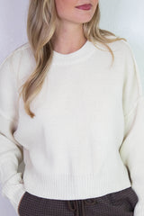 Camila Round Neck Cropped Sweater, Cream