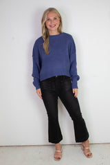 Camila Round Neck Cropped Sweater, Dusty Indigo