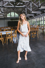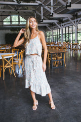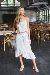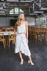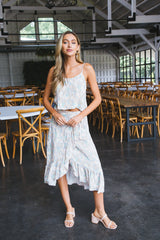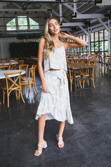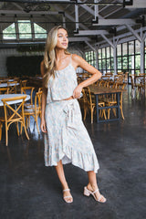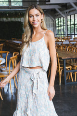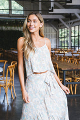 Stay on trend with our Camille Floral Crop Top! Featuring a beautiful floral print and adjustable spaghetti straps, this top is perfect for any summer day. Plus, the cropped length adds a flirty touch to any outfit. Get ready to bloom with style!