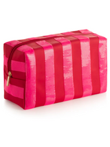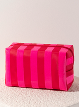Carry all your odds and ends in style with the Cara Stripe Zip Pouch! This compact cosmetic case is the perfect size to store makeup, jewelry, and anything else you might need easy access to within a stylish toiletry bag. With a vibrant and festive red and pink striped pattern, this adorable zip pouch is the perfect accessory for any season, but especially the holidays!