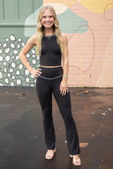 Experience comfort and style (and possibly even a bit of sass) with our Carmen Contrast Piping Lounge Pants. Featuring a unique contrast piping waist detail and a flattering fit and flare style, these black lounge pants are perfect for lounging around the house, working out, or running errands in style!