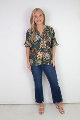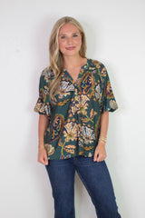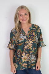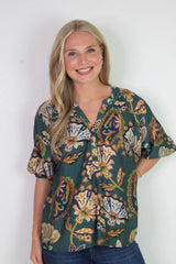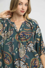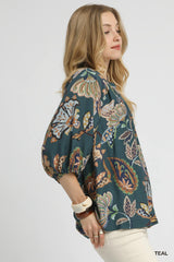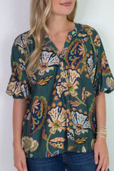 Add a splash of fun to your wardrobe with the Cecilia Printed Half Sleeve Blouse in vibrant teal. Featuring playful button details and a chic split neck, this blouse combines comfort and style effortlessly. Perfect for brightening up any day with a touch of flair!