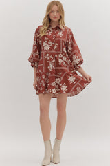 Add a splash of fun to your wardrobe with the Charlie Printed Collared Mini Dress in Red Brown. Featuring playful three-quarter sleeves and a button-detailed neckline, this dress brings charming details to your look. The collared design pairs perfectly with the flirty ruffled hem, creating an effortlessly cute outfit for any casual outing or special occasion!