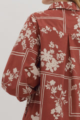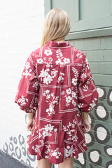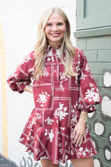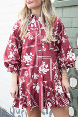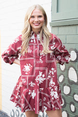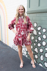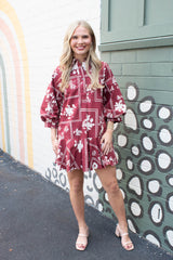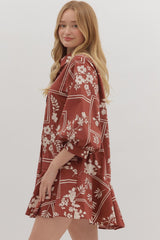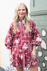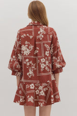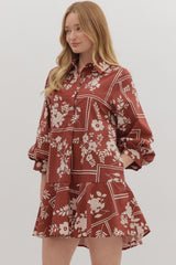 Charlie Printed Collared Mini Dress, Red Brown
