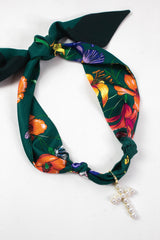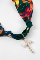 Wrap yourself in charm with this adjustable green satin scarf necklace, featuring gleaming gold hardware and a delicate pearl cross charm. Perfect for adding a playful pop of color and a touch of elegance to any outfit, it’s as versatile as your mood. This scarf necklace brings a fun, fresh twist to your jewelry collection!