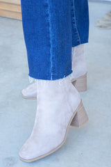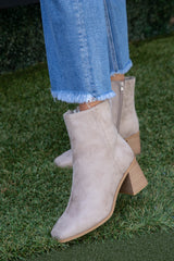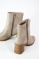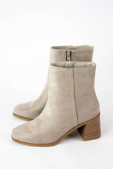 Slip into style with the Chukar Dress Bootie in Taupe Suede. Made from faux suede, this bootie features an inside zipper closure for easy on and off, a square toe for a modern touch, and a comfortable heel height for all-day wear. Perfect for any occasion!