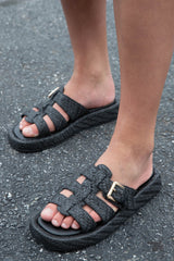 Ciao Raffia Fisherman Sandal, Black | Beach by Matisse