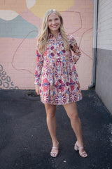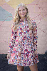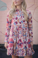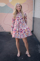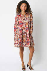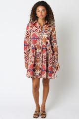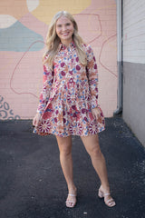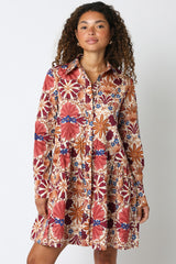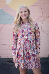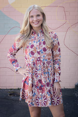 Step into style with the Ciara Collared Button Down Dress in Cream Rust. This playful mini dress features a crisp collar, long sleeves, and a fun printed pattern that adds a splash of personality. Perfect for day or night, its flattering button-down design keeps things effortlessly chic and comfortable. Get ready to turn heads with this vibrant wardrobe essential!