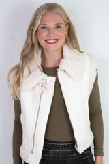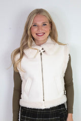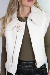 Claire Faux Leather Sherpa Lined Vest, Ivory