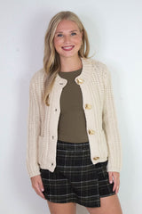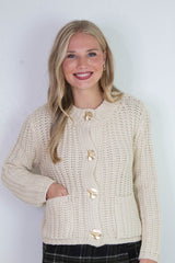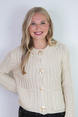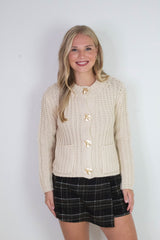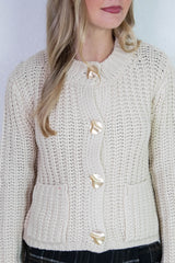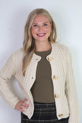 Clara Gold Button Cardigan, Cream