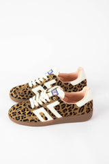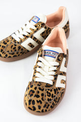 Unleash your wild side with our Cloud Vintage Style Sneaker, featuring a fun leopard print design. Made with a mix of leather and cow hair, these sneakers will add a touch of playfulness to any outfit. Perfect for stepping back in time!