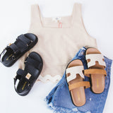 Step up your sandal game with the Cobber Flatform Sandal! These playful sandals feature adjustable velcro straps and a trendy flatform design. Say goodbye to boring summer footwear and hello to stylish comfort.