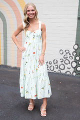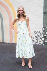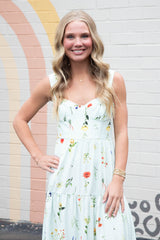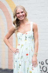 Get ready to bloom in this playful Collins Sleeveless Floral Midi Dress! With a fresh mint mix print, this tiered dress is perfect for any occasion. The sleeveless design keeps you cool while the midi length offers chic style. Plus, the side zipper closure ensures a flawless fit!