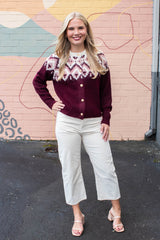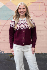 This Cornelia Raglan Sleeve Cardigan in rich burgundy combines playful style with cozy comfort. The patterned raglan long sleeves add a fun twist, while the crew neckline keeps it classic. Accented with shiny gold buttons, this cardigan effortlessly elevates any outfit with a touch of charm and warmth. Perfect for layering and making a statement!