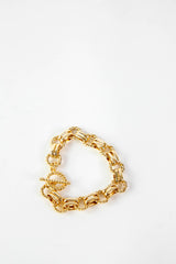 Add some twist to your style with the Cosette Twisted Toggle Bracelet. The gold chain and toggle closure make for an elegant and secure design, while the twisted details add a playful touch. A must-have accessory for any fashion-forward individual!