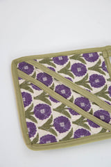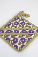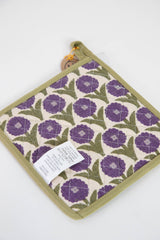 Spruce up your kitchen with this quirky, 8" square, cotton slub floral pot holder! Its quilted diamond construction ensures maximum heat resistance, while the corner hand slots make it easy to handle hot pots. Plus, the contrast trim and hanging loop add a playful touch. Don't get caught without one (or two)!