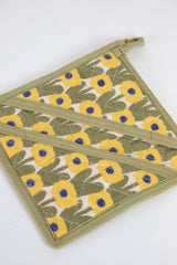 Cotton Slub Floral Pot Holder, Yellow