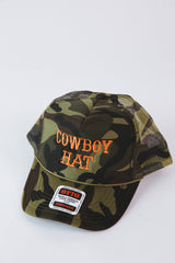 Ride on, cowpoke, with this versatile Solid Camo Cowboy Trucker Hat! Featuring a 3" brim for sun protection and a mesh back for breathability, it's perfect for long days on the range. With an adjustable snapback, this hat will fit most wranglers. Giddy up!