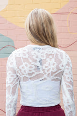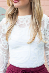 Elevate your style with the Crissa Lace Top in Cream, featuring delicate sheer fabric and a charming floral pattern. Its round neck and long sleeves create a graceful silhouette perfect for any occasion. Playful and elegant, this top brings a touch of whimsy to your wardrobe while keeping you effortlessly chic!