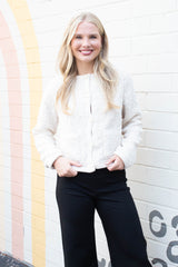 Cozy up in the Cuddle Up Cardi, Light Oat—a charming blend of warmth and style. This playful cardigan features a round neck, button-down front, and long sleeves perfect for layering. Soft faux fur adds a touch of luxury, while crochet knit trim and handy front pockets bring a fun, crafty vibe. Ideal for cool days when comfort meets cute!