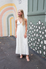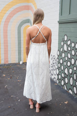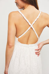 Show off your boho-chic side with our Dahlia dress! Featuring a braided crisscross back and delicate lace details, this maxi dress will give you a stunning silhouette. The v-neck and sleeveless design add a touch of elegance, while the back zipper closure and elastic waist provide comfort and convenience. Rock this natural beauty for any occasion!