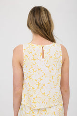 Daisy Floral Sleeveless Linen Blouse, Mustard Multi