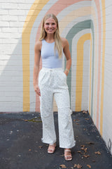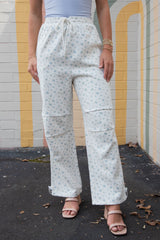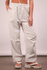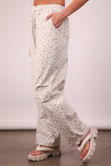 Dakota Floral Cotton Parachute Pants, White