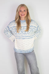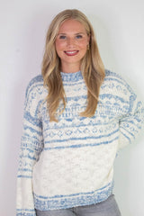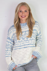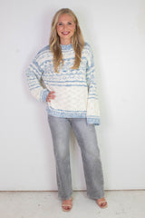 Embrace cozy chic with the Dani Pattern Sweater in Cloud Combo. This oversized sweater features wide cuffed long sleeves and a playful funnel neck, perfect for layering up in style. With its unique patterned design and rolled edges, it adds a fun, effortless vibe to your cold-weather wardrobe. Ready to keep you warm while turning heads? This sweater’s your new go-to for comfy, standout comfort!