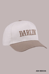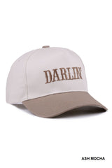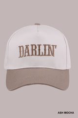 Slay in style with our Darlin' embroidered two-tone cap! This playful adjustable strap cap features stunning ash mocha accents and embroidered lettering, adding a touch of uniqueness to any outfit!
