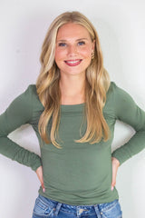 Add a little extra flair to your wardrobe with the Della Layered Round Neck Top in Olive. Featuring cozy long sleeves and a playful double-layered design, this top keeps things interesting while staying comfortably casual. Perfect for layering or wearing on its own, it’s your go-to for effortless style with a twist.