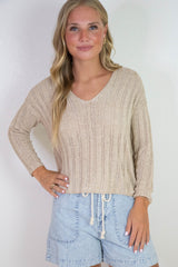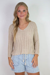 Devon Wide Rib Knit Sweater, Taupe | Sadie & Sage
