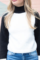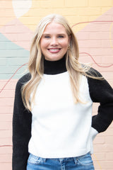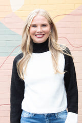 Stay cozy and stylish in the Downtown Mock Neck Sweater by Sanctuary. Featuring a fun colorblocked design in black and chalk, this ribbed knit piece hugs you just right. The playful mock neck and long sleeves add warmth with a twist, making it your new go-to for cool days and casual vibes!