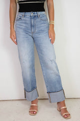 Dance through your day in our Eastside High Rise Loose Jeans! These high-waisted wonders feature a roomy straight leg silhouette that's all about freedom and fun. The light distressing adds just enough edge, while the playful cuffed hem lets you show off those fabulous shoes. In our dreamy "Be Mine Vintage" wash, these jeans are ready to become your new go-to for mischief and memories!