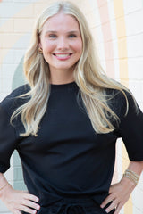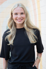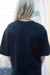 Get comfy and stand out in the Edna Short Sleeve Tee in Black. With a boxy, oversized fit and breezy short sleeves, it’s perfect for easygoing days or layering up with your favorite jacket. The classic crew neckline keeps it cool and casual while adding a touch of timeless style to your wardrobe!