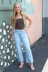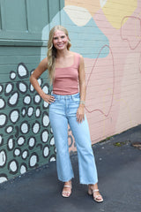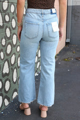 Step back into the '90s with these super high-rise jeans that hug your waist and flow into slim, wide legs for a fun, flattering silhouette. Lightly distressed details add just the right amount of edge, making them perfect for turning heads while keeping your look effortlessly cool and playful!
