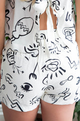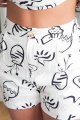Show off your playful side with Elena Doodle Print Shorts! These quirky bottoms feature a fun doodle print, an elastic waist for the perfect fit, pleated details for added style, and convenient side pockets. Complete with a button and zipper closure, these shorts are the perfect combination of comfort and fashion!