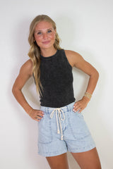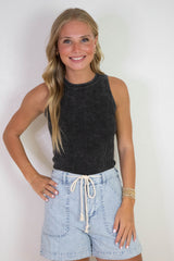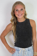 Get ready to turn heads in the Elowen Washed Ribbed Tank Top in Charcoal! This sleeveless beauty features a cozy ribbed knit and a classic crew neckline, perfect for layering or rocking solo on sunny days. Its washed finish adds a laid-back vibe that’s as comfy as it is cute. Whether you’re out for brunch or just chilling, this tank brings effortless style with a playful twist!