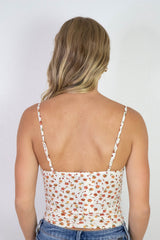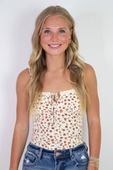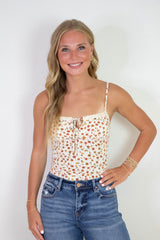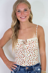 Emily Floral Front Tie Cutout Cami, Cream Multi