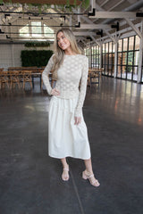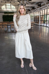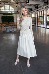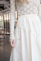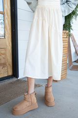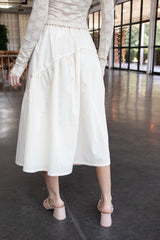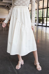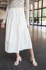 Get ready to pop into style with our Emory Poplin Midi Skirt! With its asymmetrical yoke and playful poplin fabric, this skirt is perfect for any occasion. The elastic waistband adds comfort and versatility to this must-have piece. Say goodbye to boring skirts and hello to effortless fashion!